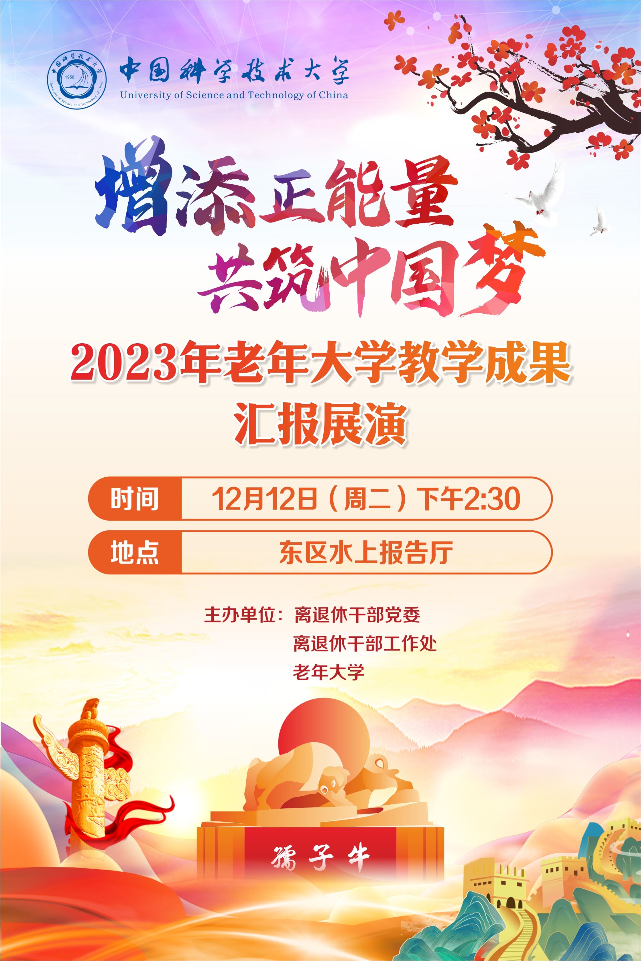 藝韻綻放 歲月華章。我校老年大學成立17年來,已逐步成為離退休教職工學習文化、交流思想、傳播正能量的重要陣地。在元旦佳節來臨之際,離退休干部黨委、離退休干部工作處聯合老年大學舉辦“增添正能量 共筑中國夢” 2023年度老年大學老有所學教學成果匯報展演,展現老同志老有所學、積極向上的精神風貌。