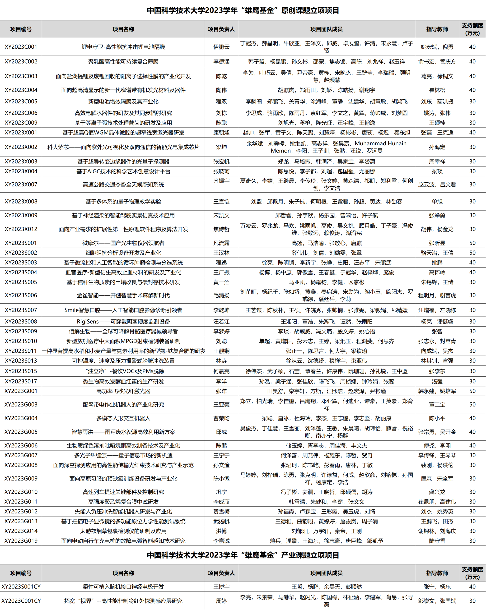 中國科學技術大學2023學年“雄鷹基金”立項項目